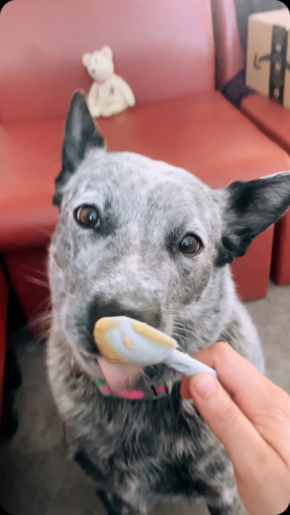 Cashew is an Austrailian Cattle Dog of the Blue ‘Healer’ variety. Cashew is around our clinic a few times a week and can also be requested for off-site corporate events.
